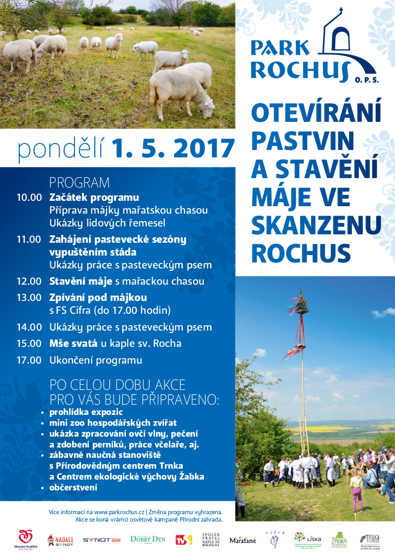 Park Rochus v Uherském Hradišti zve 1. května 2017 na akci Otevírání pastvin a stavění máje. Program začíná v 10 hodin. Více informací naleznete v příloze.