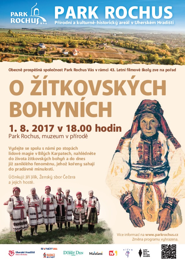 Park Rochus v Uherském Hradišti zve 1. srpna 2017 od 18 hodin na pořad O žítkovských bohyních. Vystoupí v něm Jiří Jilík, ženský sbor Čečera a jejich hosté.