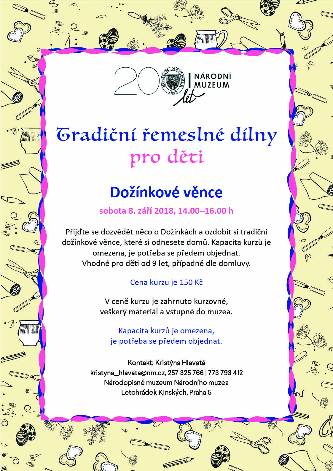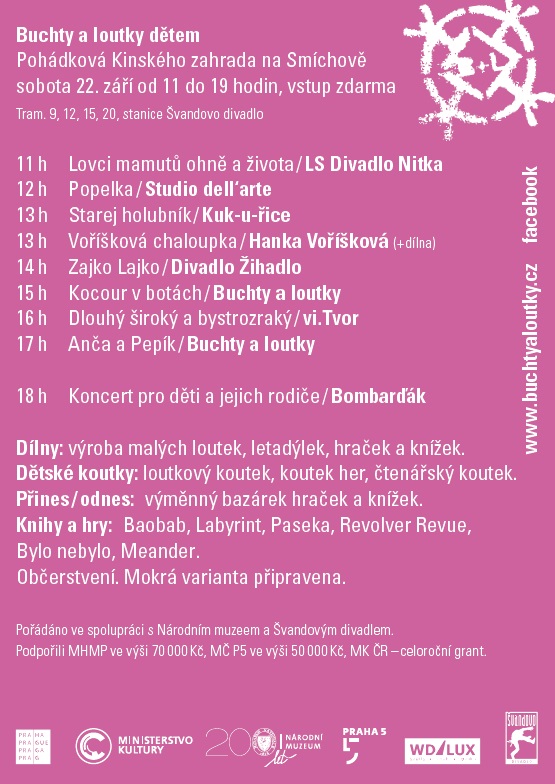 Národopisné muzeum Národního muzea v Praze připravilo na září několik akcí. V cyklu Folklorní regiony Čech, Moravy a Slezska se 8. září představí Pardubicko. Tradiční řemeslné dílny proběhnou 8. a 9. září – pro dospělé jsou věnovány výrobě loutek, pro děti výrobě dožínkových věnců. Dne 9. září se koná slavnost Rumunů v ČR a v sobotu 22. září pak tradiční festival Buchty a loutky dětem. Podrobnosti k programům najdete v přílohách.