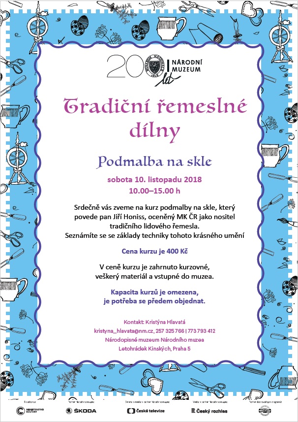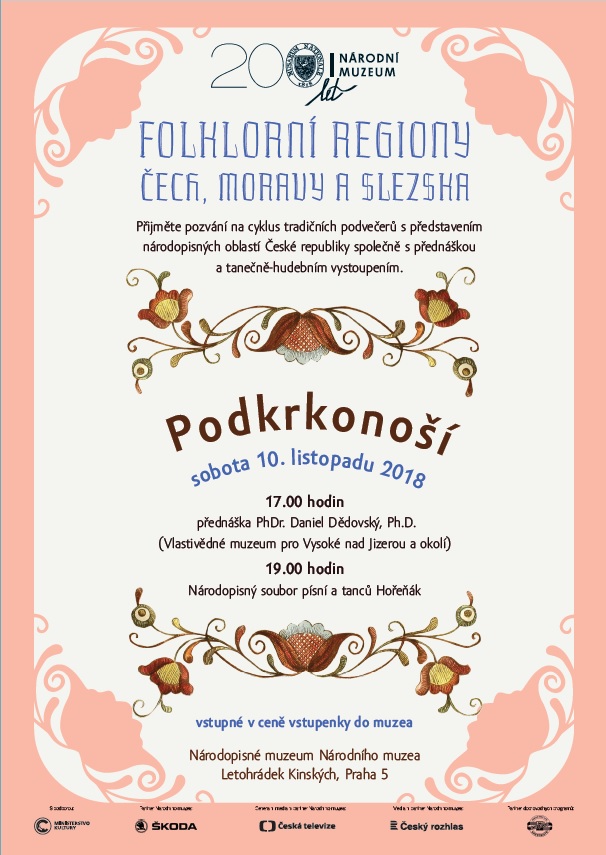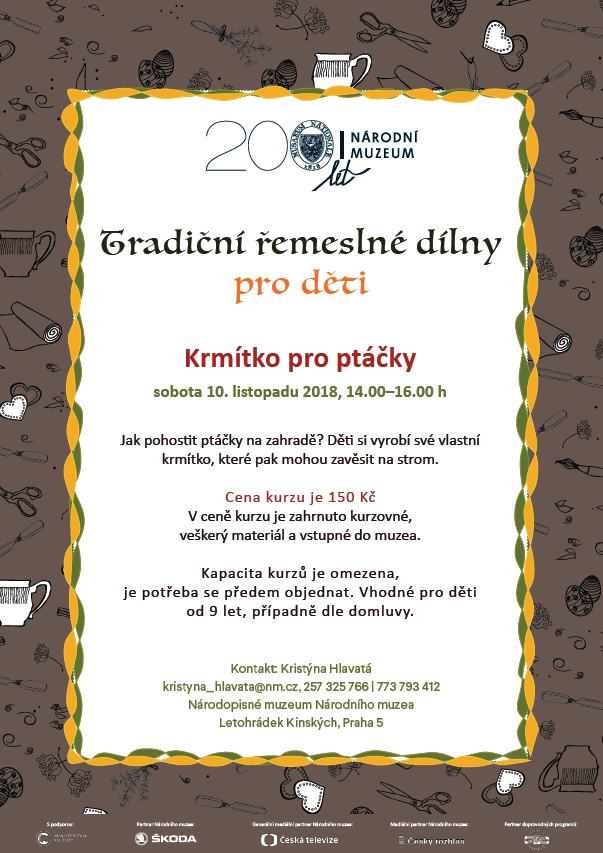 Národopisné muzeum Národního muzea v Praze připravilo na listopad několik akcí. V cyklu Slovo, tradice a kontext vystoupí 1. listopadu Jiří Starý s přednáškou o žánrech doby vikinské. V rámci Folklorních regionů Čech, Moravy a Slezska se 10. listopadu představí Podkrkonoší. Tradiční řemeslné dílny proběhnou také 10. listopadu – pro dospělé jsou věnovány podmalbě na skle, pro děti výrobě krmítka pro ptáčky. Poslední listopadovou akcí bude Drátenické odpoledne 24. listopadu. Podrobnosti k programům najdete v přílohách.