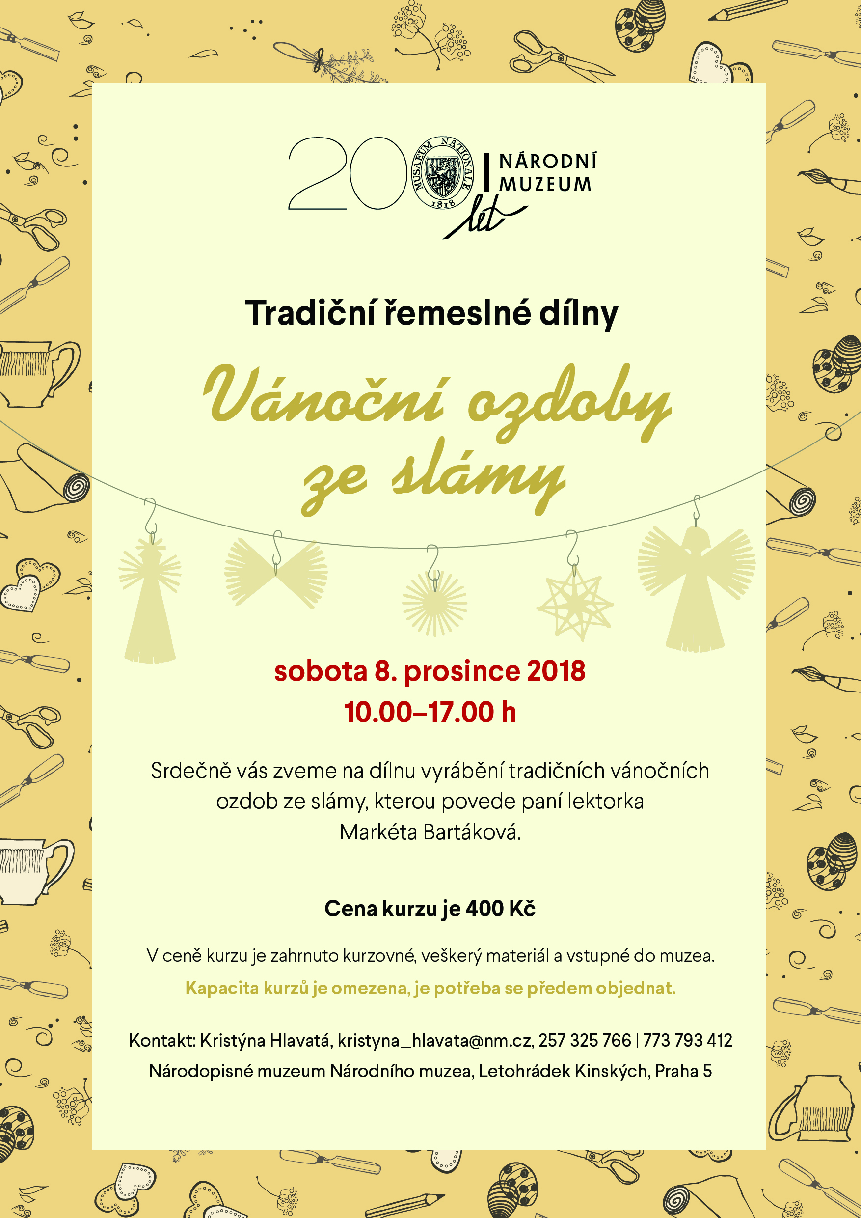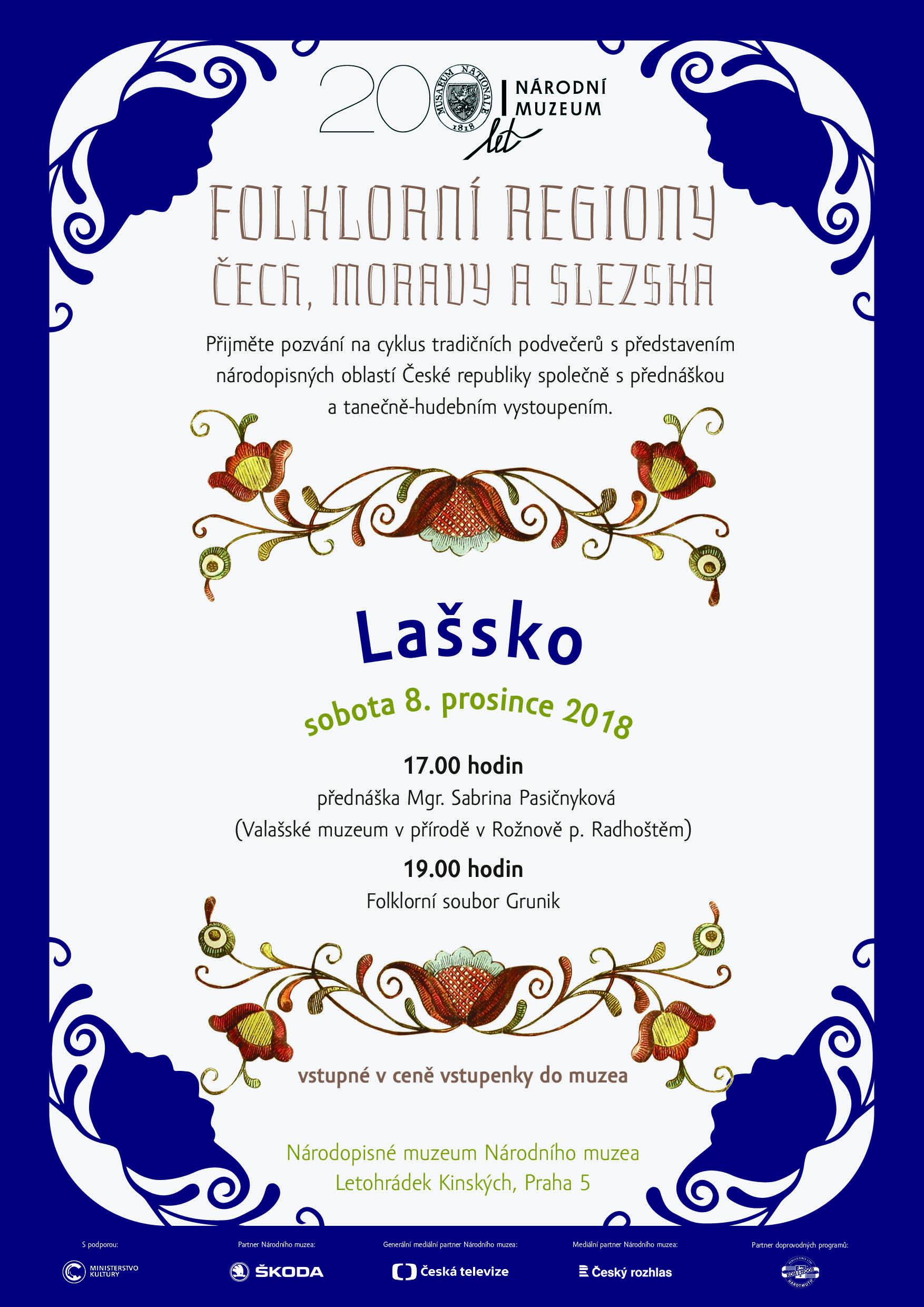 Národopisné muzeum Národního muzea v Praze zve v prosinci na několik akcí. V cyklu Slovo, tradice a kontext vystoupí 6. prosince Ondřej Skovajsa, který bude přednášet o moravské lidové písni. V rámci Folklorních regionů Čech, Moravy a Slezska se 8. prosince představí Lašsko. Tradiční řemeslné dílny proběhnou také 8. prosince – jsou věnovány výrobě vánočních ozdob. Dále jste zváni 12. prosince na zpívání koled a 15. prosince na rodinný program o Vánocích. Podrobnosti k programům najdete v přílohách.