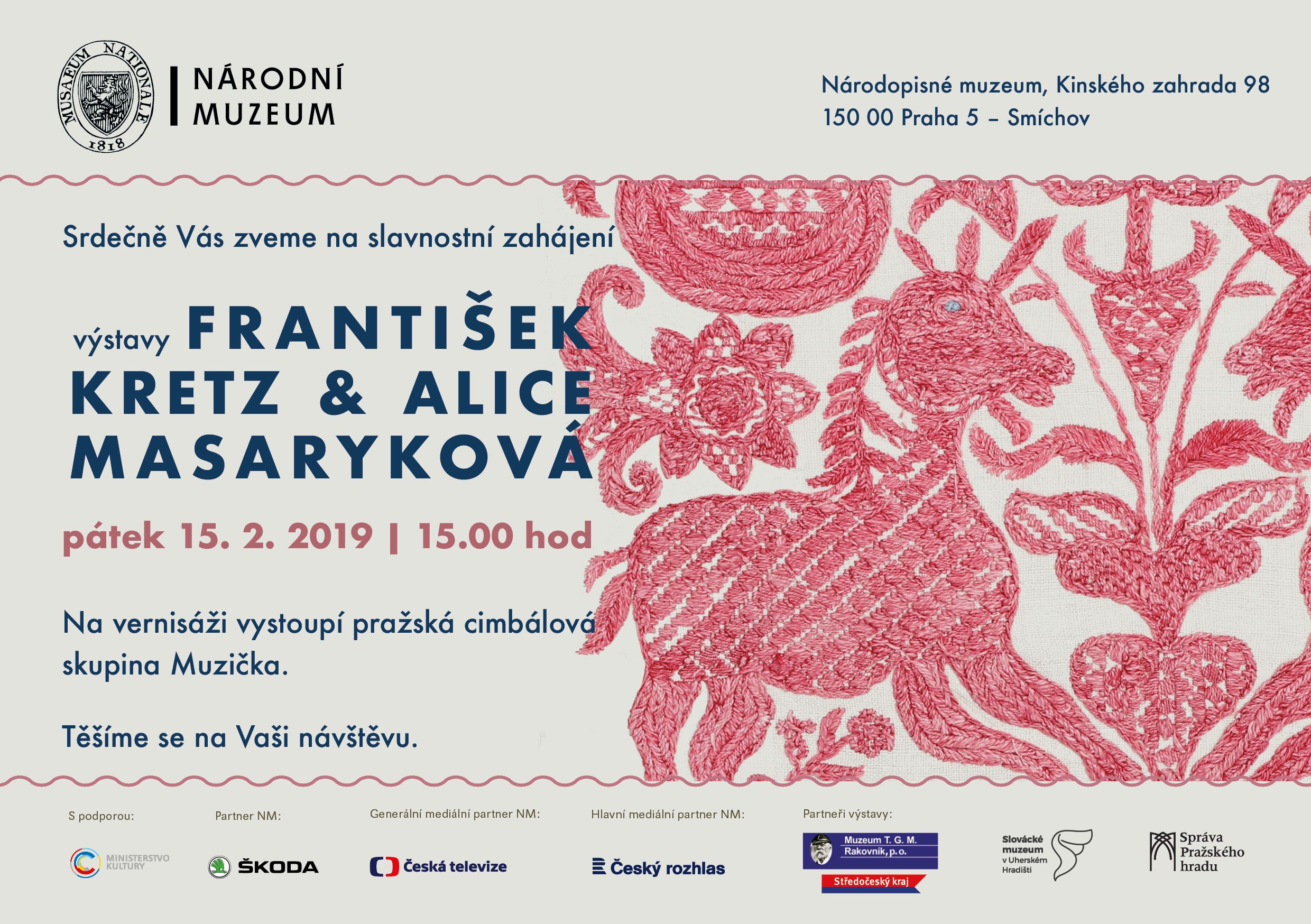 Výstava Fratišek Kretz a Alice Masaryková bude slavnostně zahájena 15. února 2019 v 15 hodin v Národopisném muzeu Národního muzea v Praze. Výstava představí sbírky lidového oděvu, textilu, výšivek, keramiky a kraslic, které získal František Kretz nejen pro Národní muzeum, ale i pro výzdobu interiérů Pražského hradu, kde spolupracoval s Alicí Masarykovou. Zhlédnout můžete výstavu do 15. září 2019.