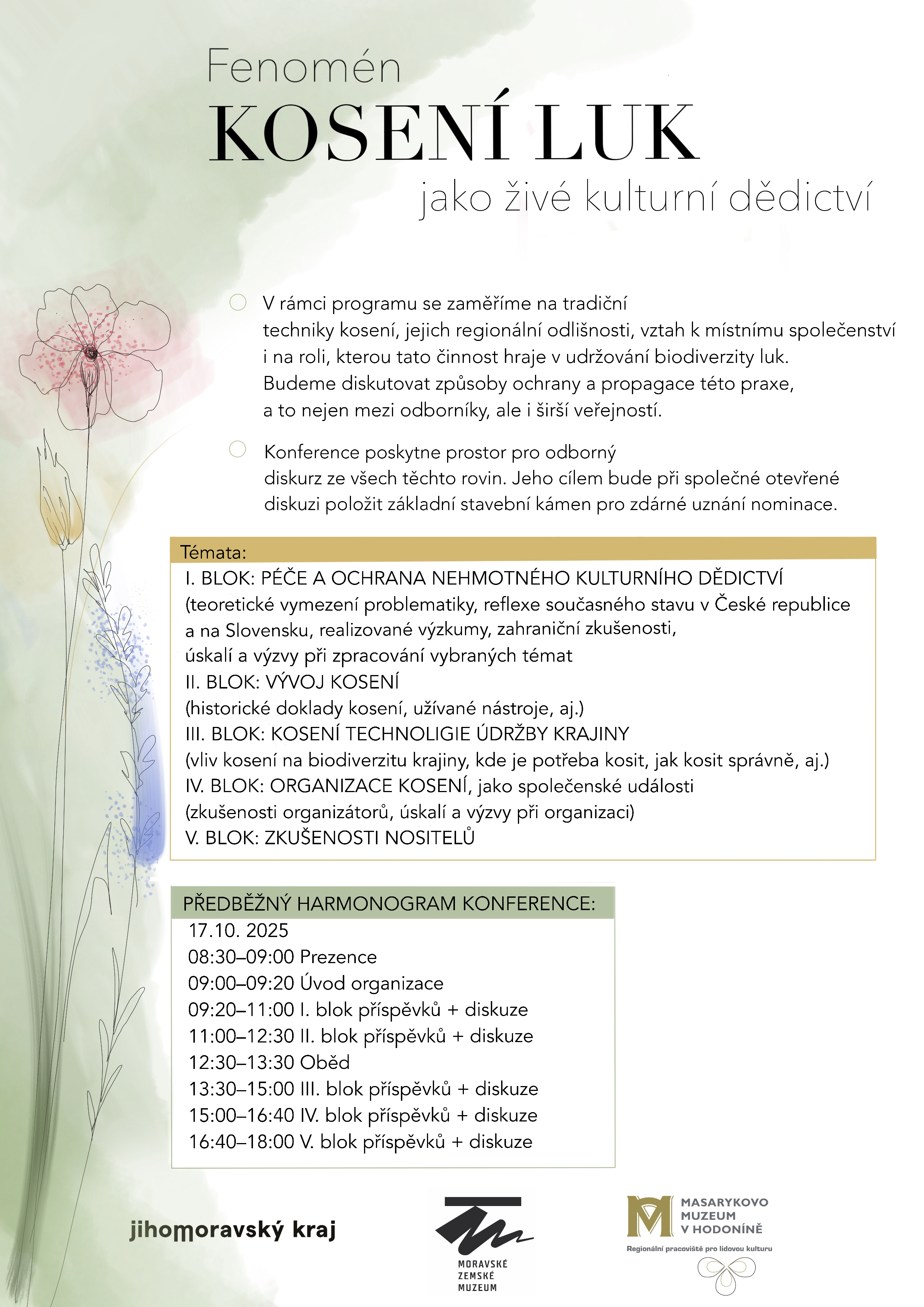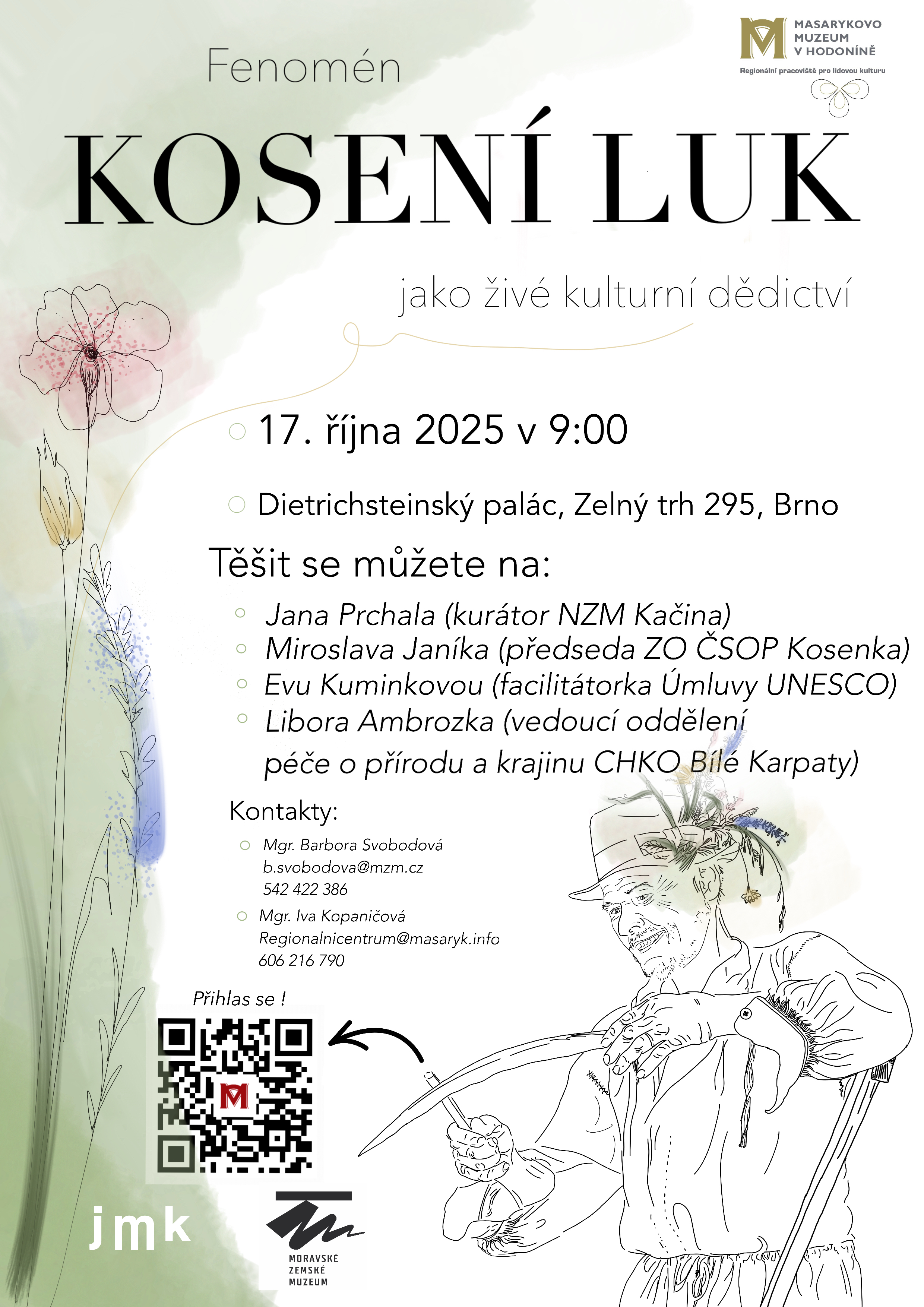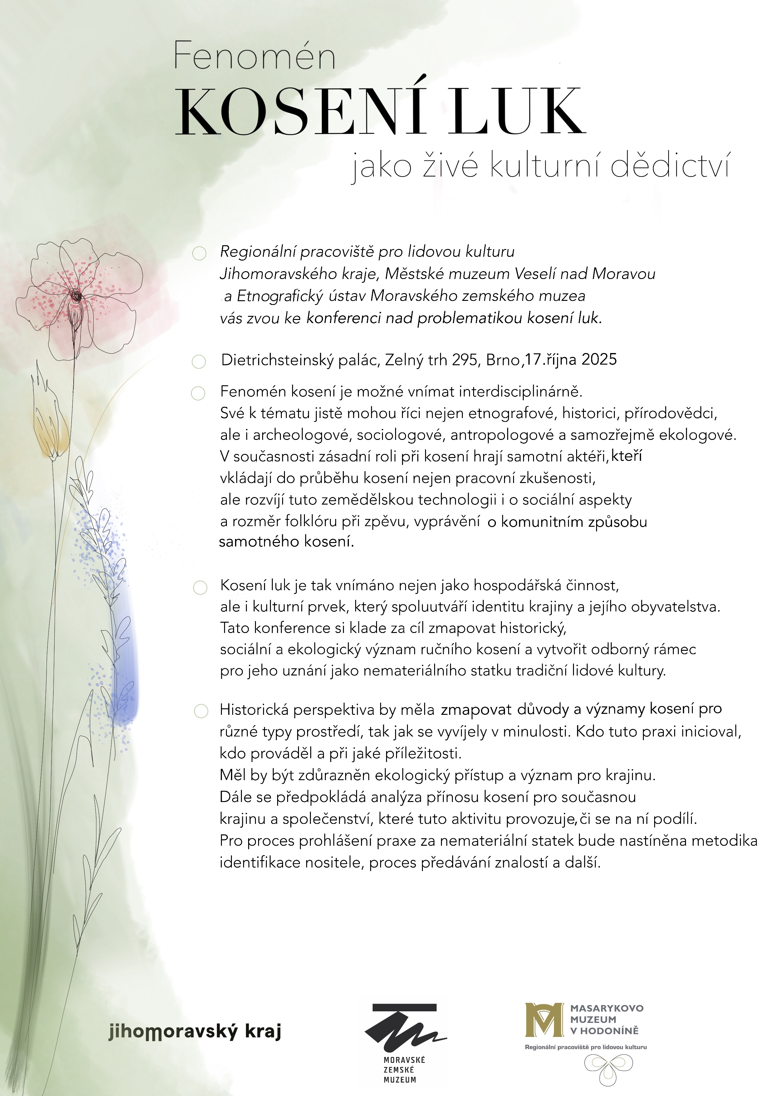 Dne 17. 10. 2025 se uskuteteční konference s názvem Fenomén kosení luk jako živé kulturní dědictví. Místem konání bude Dietrichstejnský palác, Zelný trh 295, Brno.