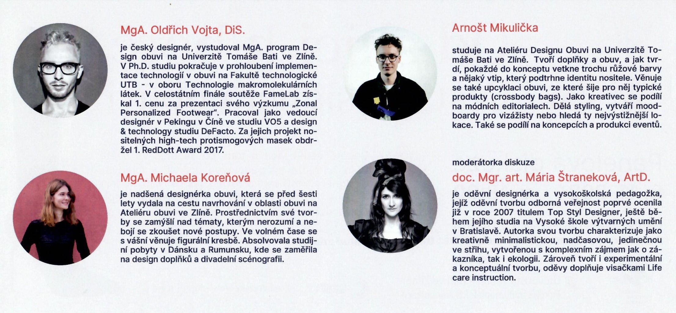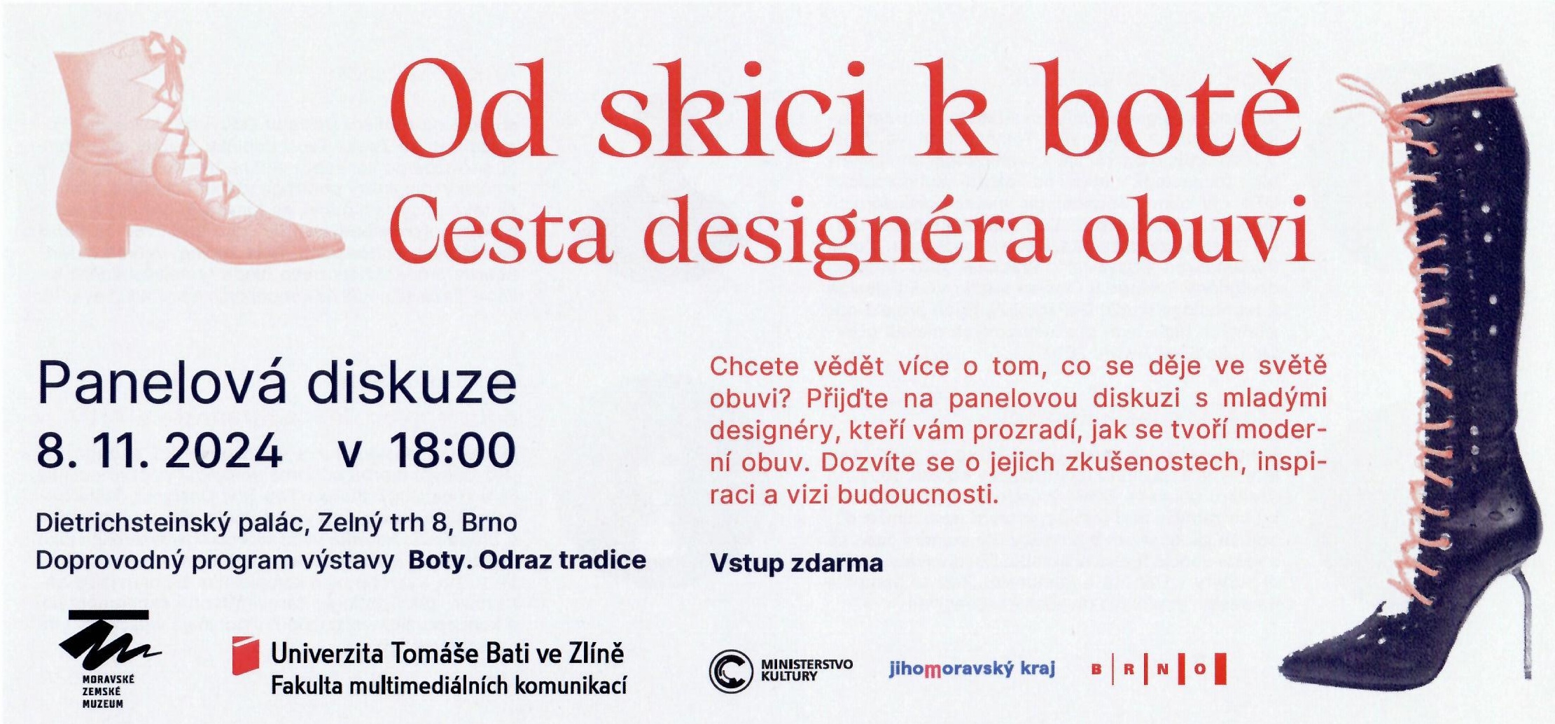 Dne 8. 11. 2024 se od 18:00 v prostorách Dietrichtštejnského paláce v Brně (Zelný trh 8) koná panelová diskuse s názvem Od skici k botě. Cesta designéra obuvi. Vstup zdarma. Podorbnosti viz pozvánka.