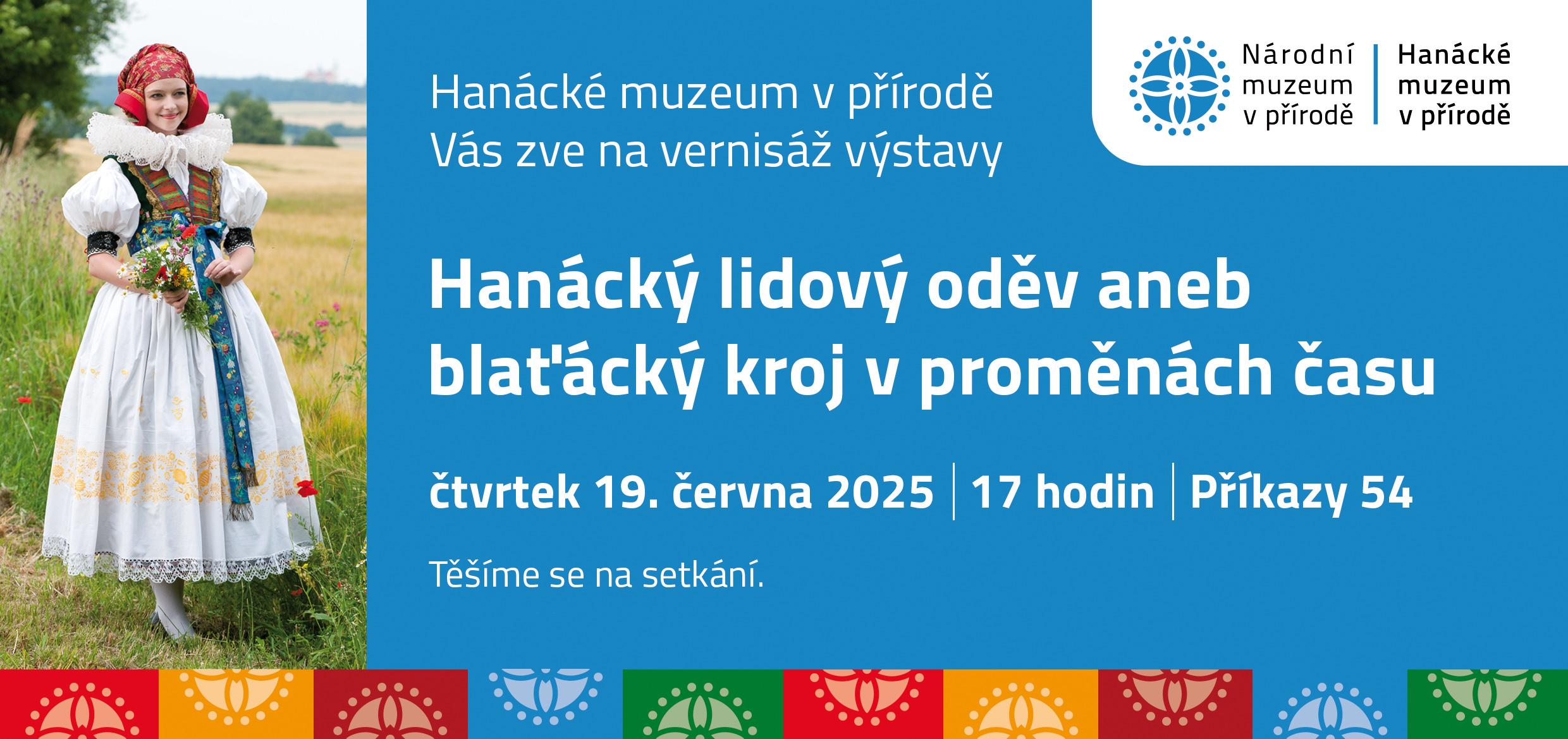 Ve čtvrtek 19. 6. 2025 se v 17:00 v Hanáckém muzeu v přírodě, Příkazy 54 uskuteční vernisáž výstavy Hanácký lidový oděv aneb blaťácký kroj v proměnách času. Výstava představí různé typy hanáckých krojů a jejich proměnu v 19. a 20. století na příkladu tzv. blaťácké varianty lidového oděvu.