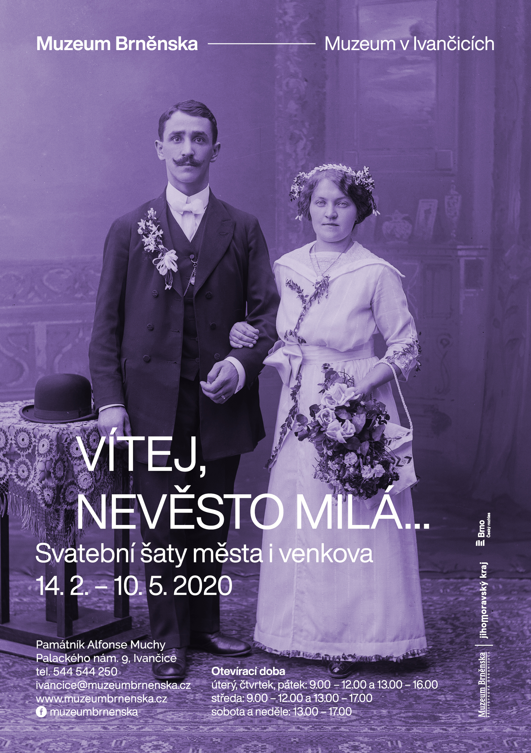 Muzeum Brněnska - Muzeum v Ivančicích srdečně zve ma výstavu Vítej, nevěsto milá... Svatbení šaty města i venkova, kterou můžete navštívit v Památníku Alfonse Muchy v Ivančicích od 14. 2 do 10. 5. 2020.